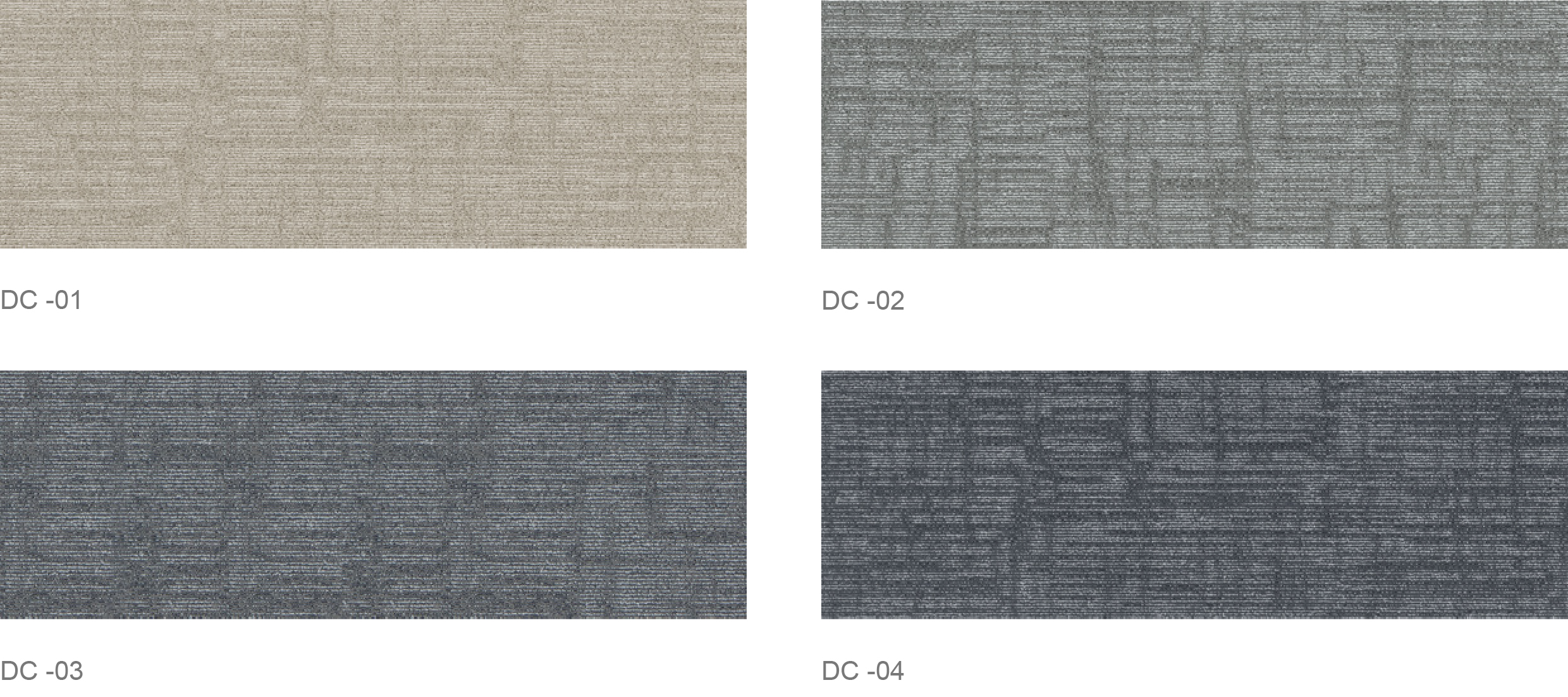 OFFICE CARPET TILES DC SERIESCarpets are practical soft furnishings suitable for various spaces, integrating decorative beauty and practical functions. They soften the lines of hard spaces, reduce environmental noise, adapt to different styles flexibly, and easily add exclusive style and warmth to the space.
