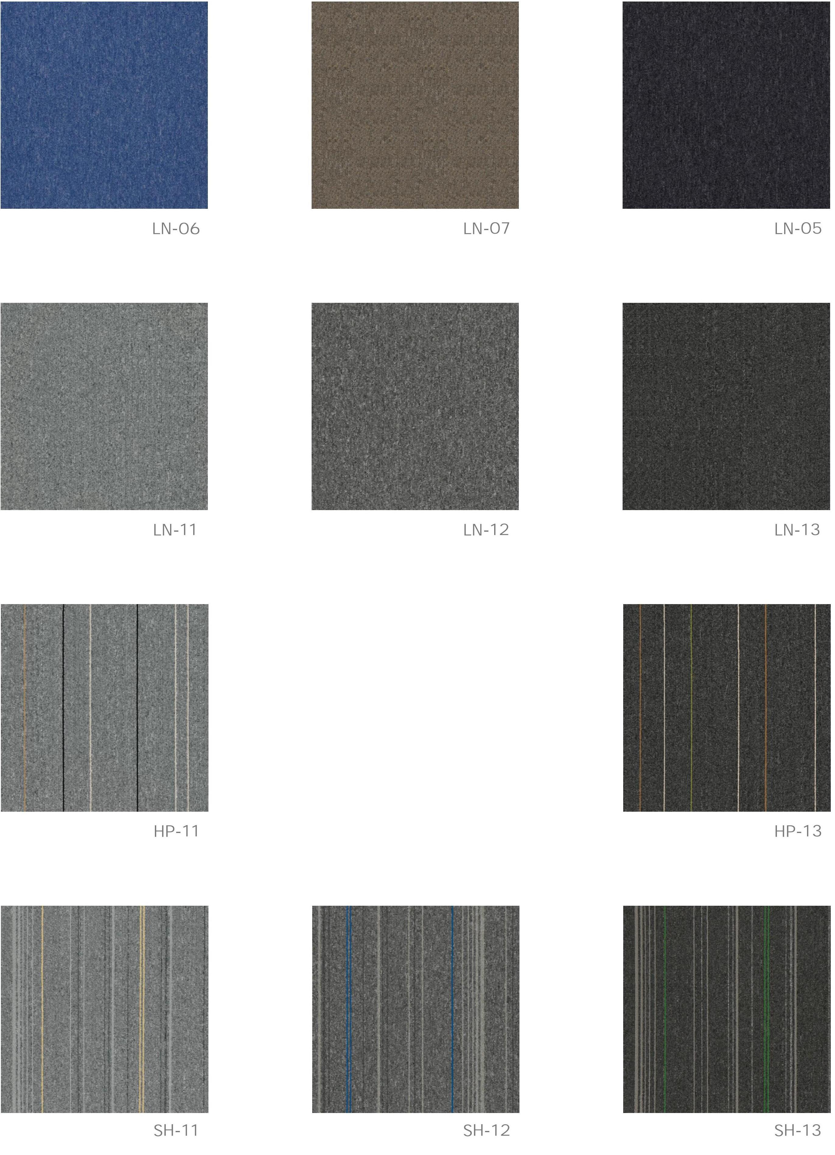 OFFICE CARPET TILES LN/HP/SH SERIESThe pattem design on the square carpet is relatively rich and colorful,Uesr can formulate your own carpet pattern design according to your favorite, cultural and artistic cultivation, and interior decoratlon style.